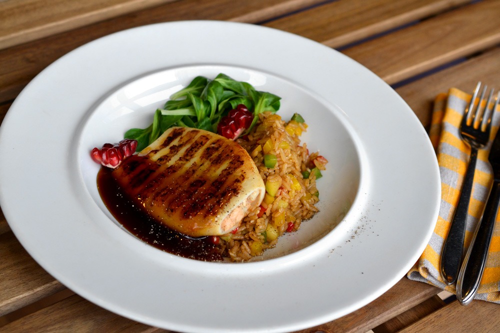 Кальмар фаршированный лососем