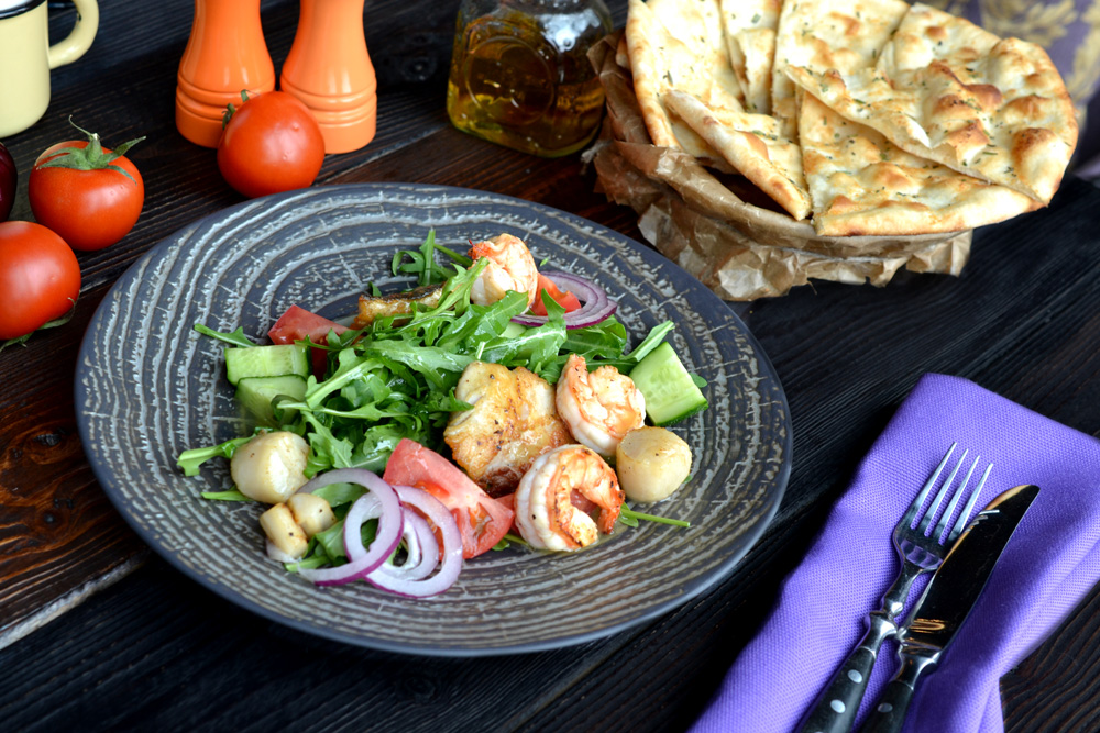 Теплый салат из морепродуктов