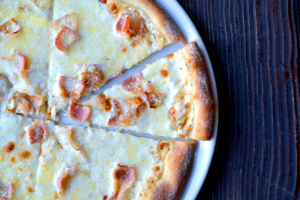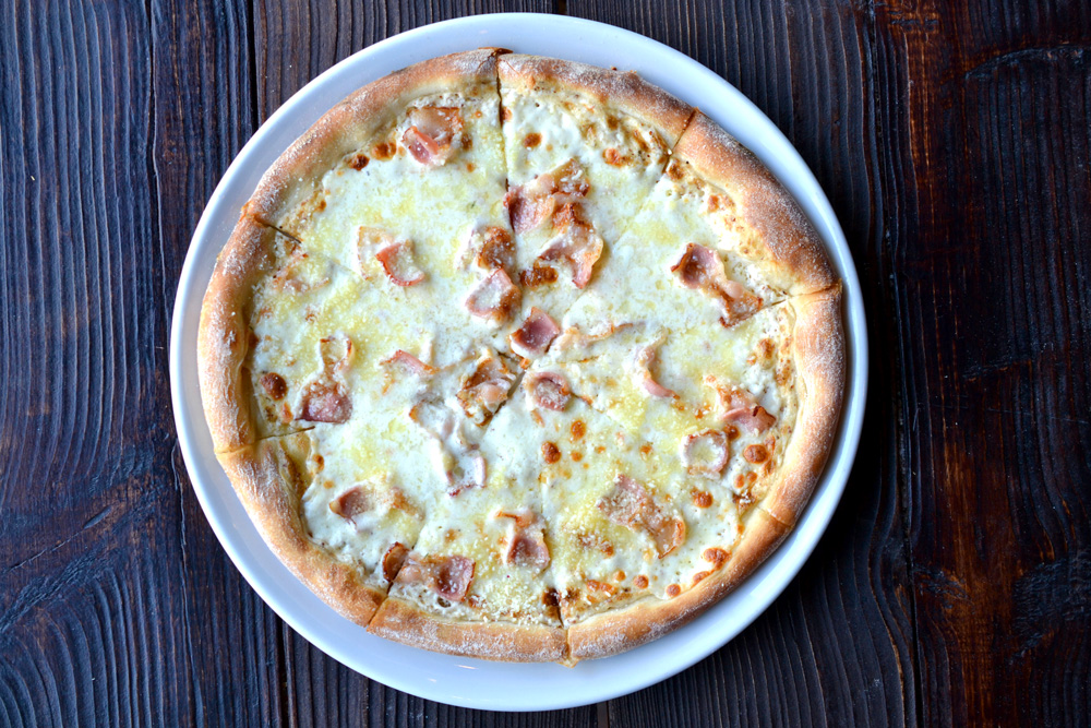 сыр моцарелла, соус цезарь, бекон, пармезан, сливочный соус