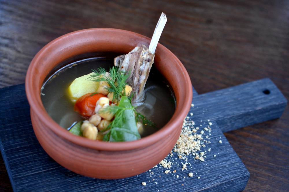 традиционный восточный суп на крепком мясном бульоне из корейки ягненка и овощей с добавлением ароматных трав и специй